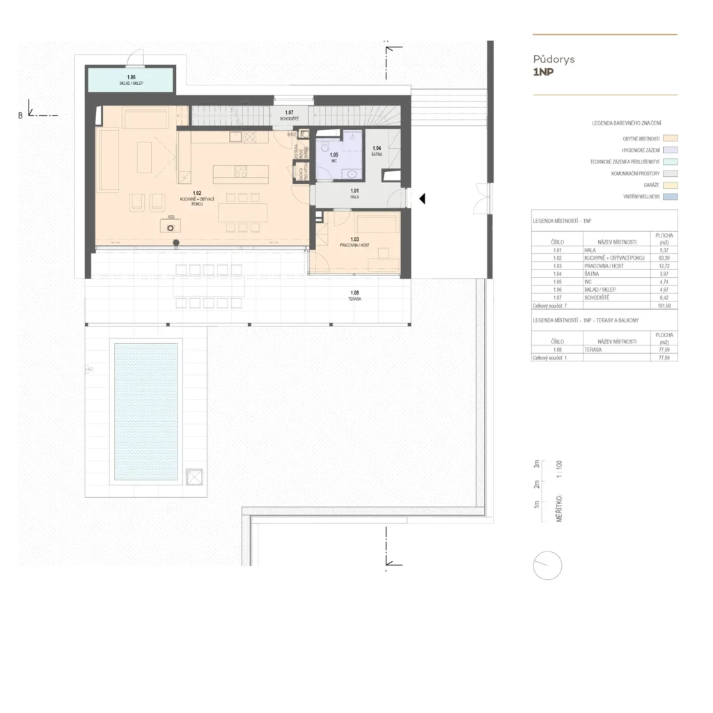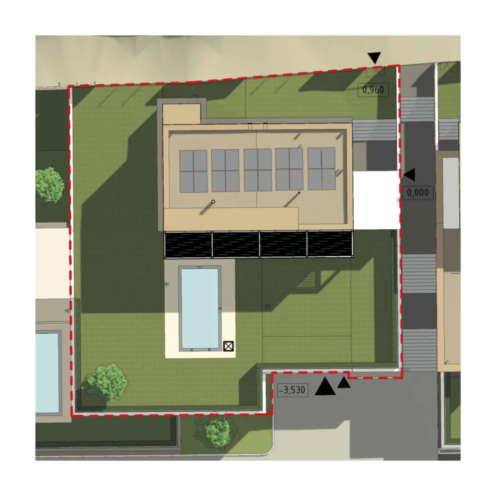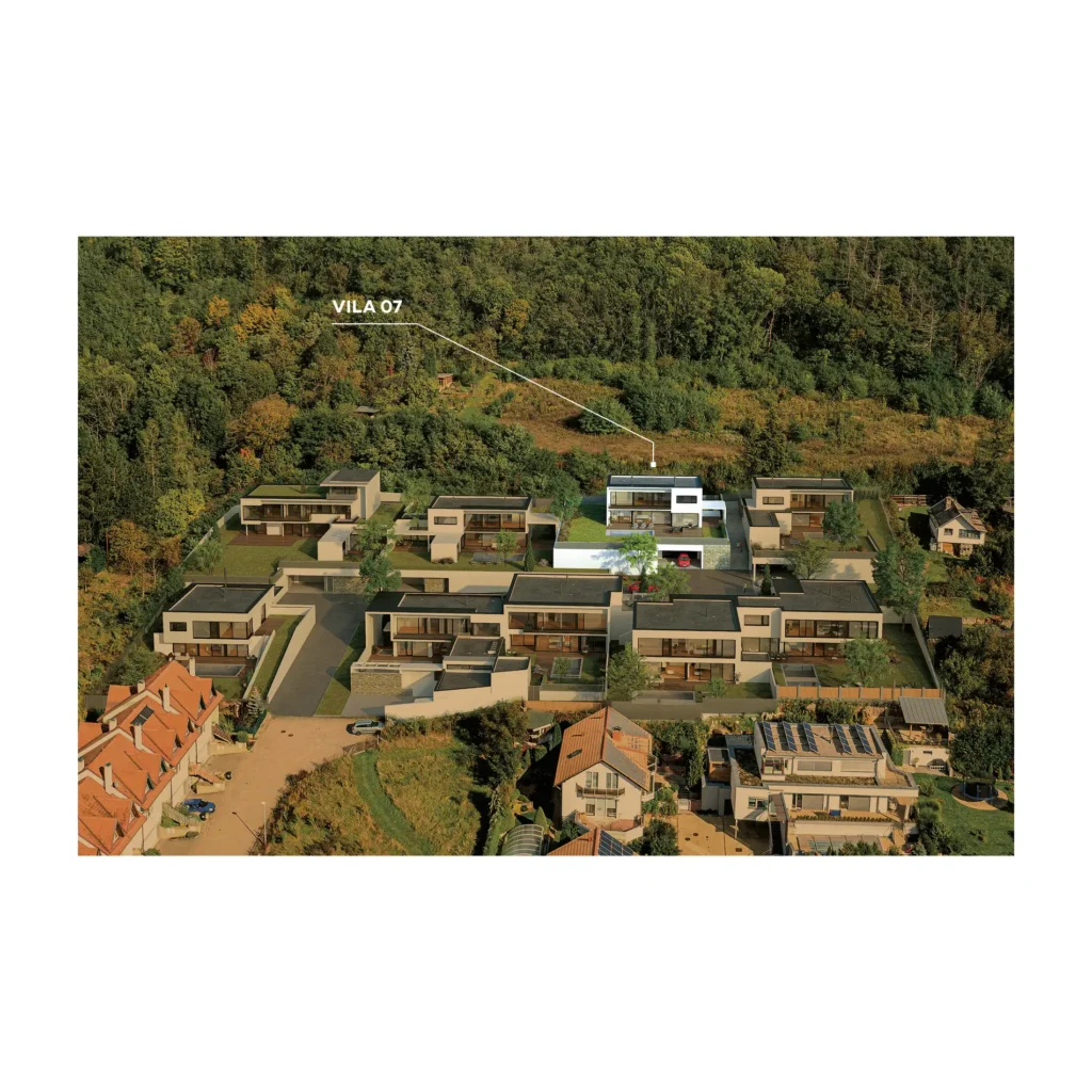 Samostatně stojící a nejvýše položená vila s překrásným výhledem. Denní část domu navazuje na zahradu, klidová spací část domu se nachází v nejvyšším podlaží.