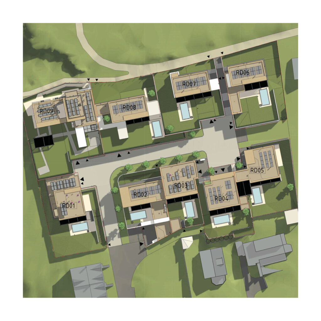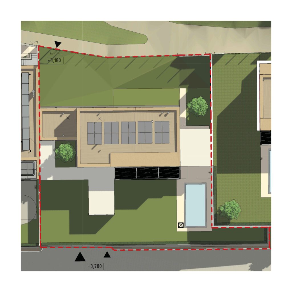 Velkorysé prostorové řešení a impozantní výhledy do krajiny a na město. Největší pozemek z prodávaných vil s dostatkem místa pro bazén a pobyt venku.